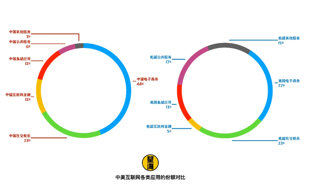 根據《BCG:2017 年中國互聯網特色解讀》的數據顯示,中國互聯網市場中電子商務佔比遠高於美國。這一點從根本上給予了中國物流行業足夠大的市場空間。