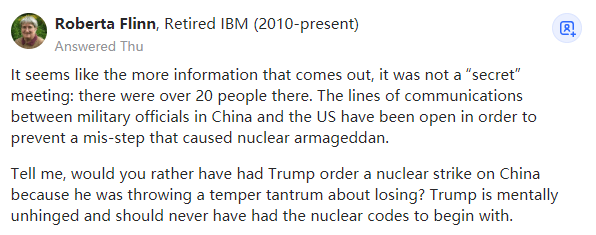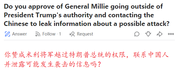 本文譯自Quora,原標題:Do you approve of General Millie going outside of President Trump’s authority and contacting the Chinese to leak information about a possible attack?