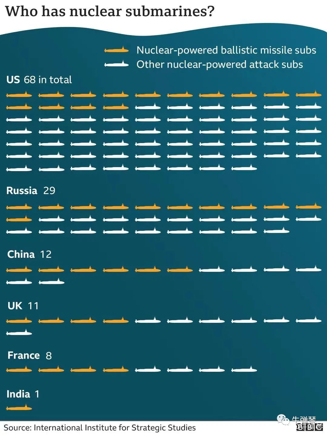 按照BBC的統計,現在世界上擁有核潛艇的國家,只有六個:美國、俄羅斯、中國、英國、法國、印度。
