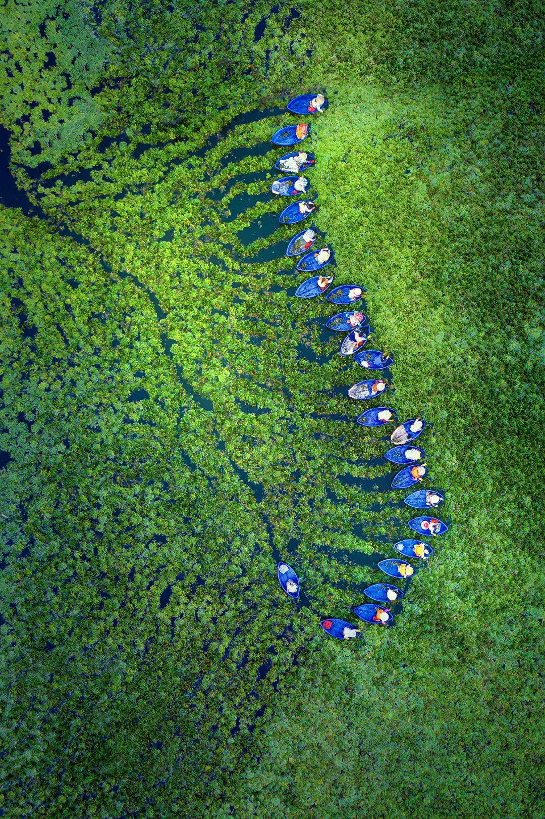 (出自唐朝白居易《看採菱》;下圖請滑動查看,菱的果實菱角皮脆肉美,蒸煮剝殼後可食用,圖片來源@視覺中國)