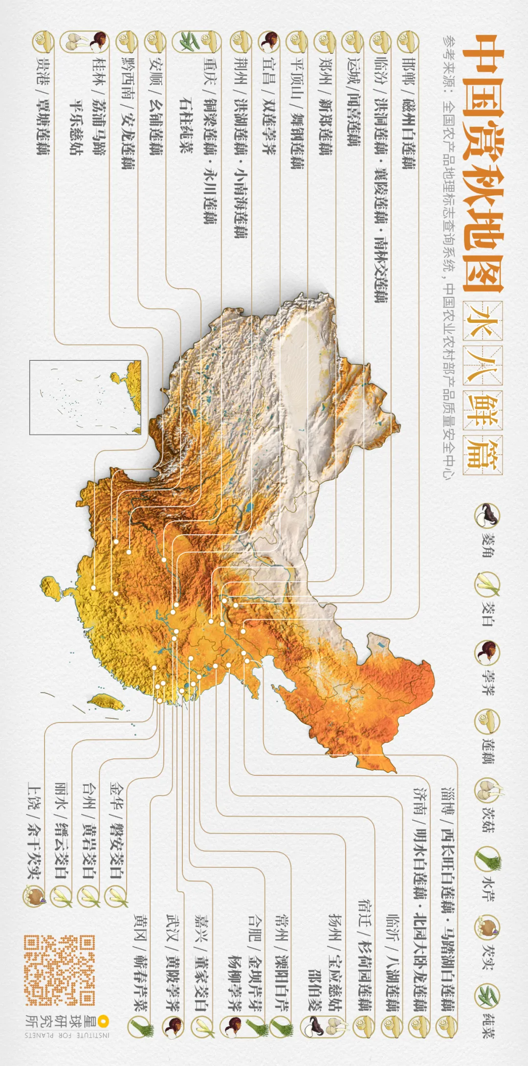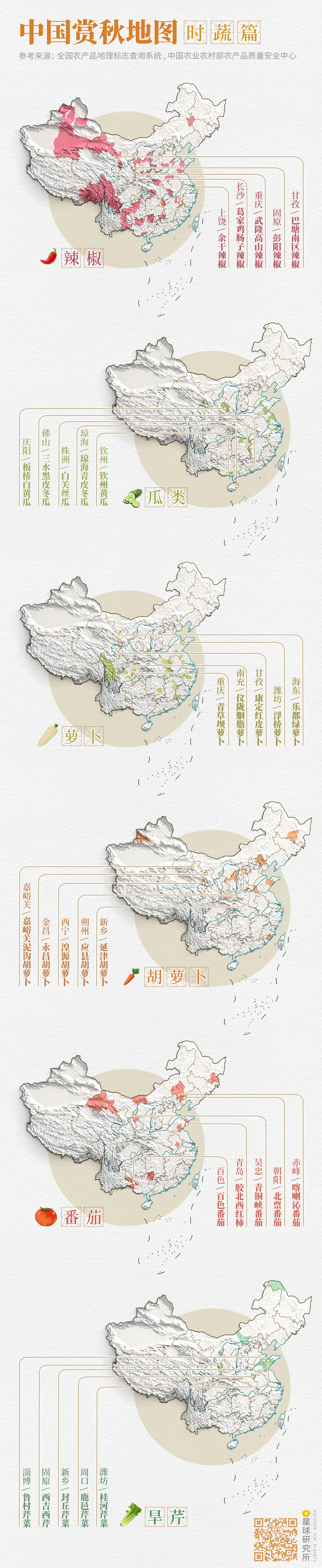 (中國賞秋地圖⎜時蔬篇,製圖@鄭藝&鄭伯容/星球研究所)