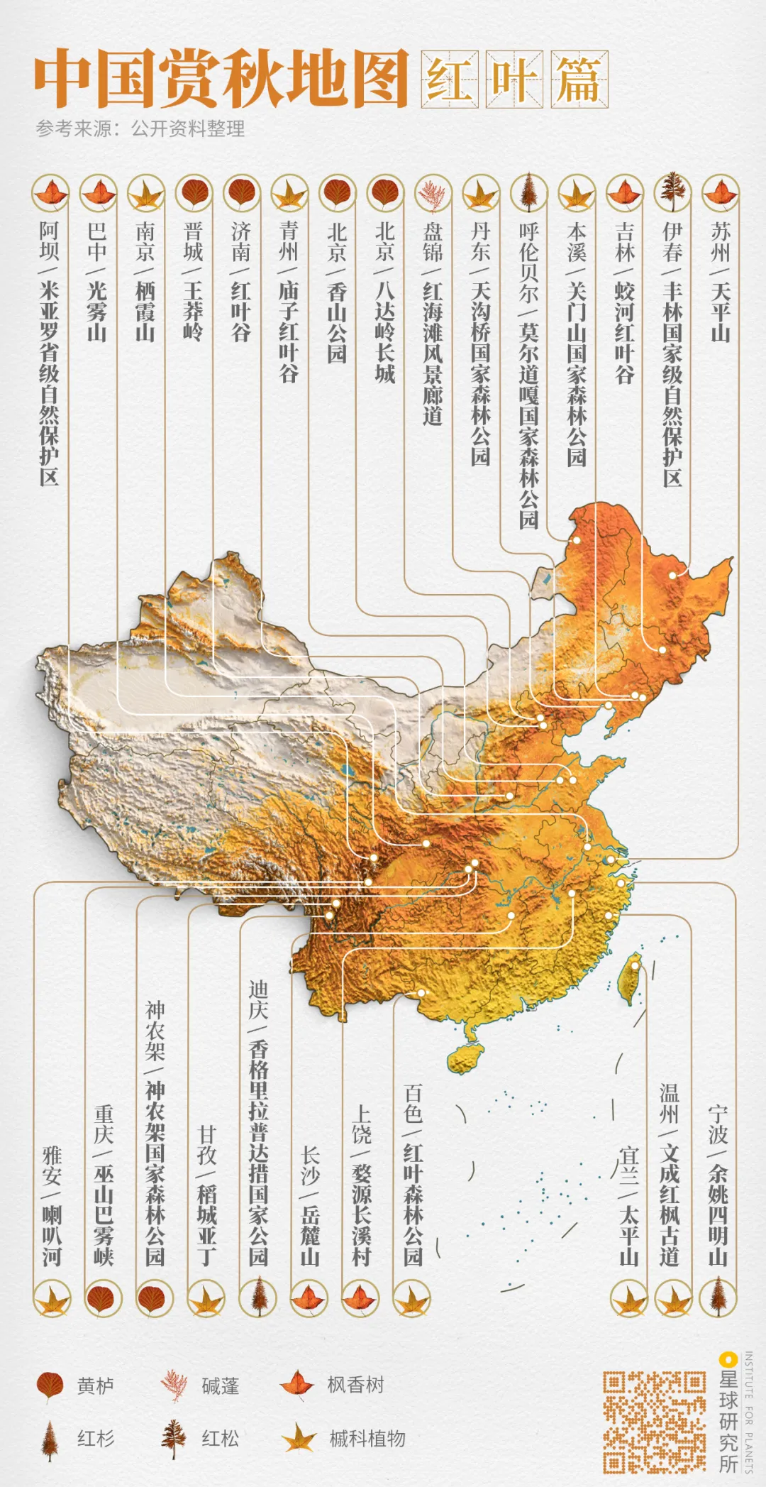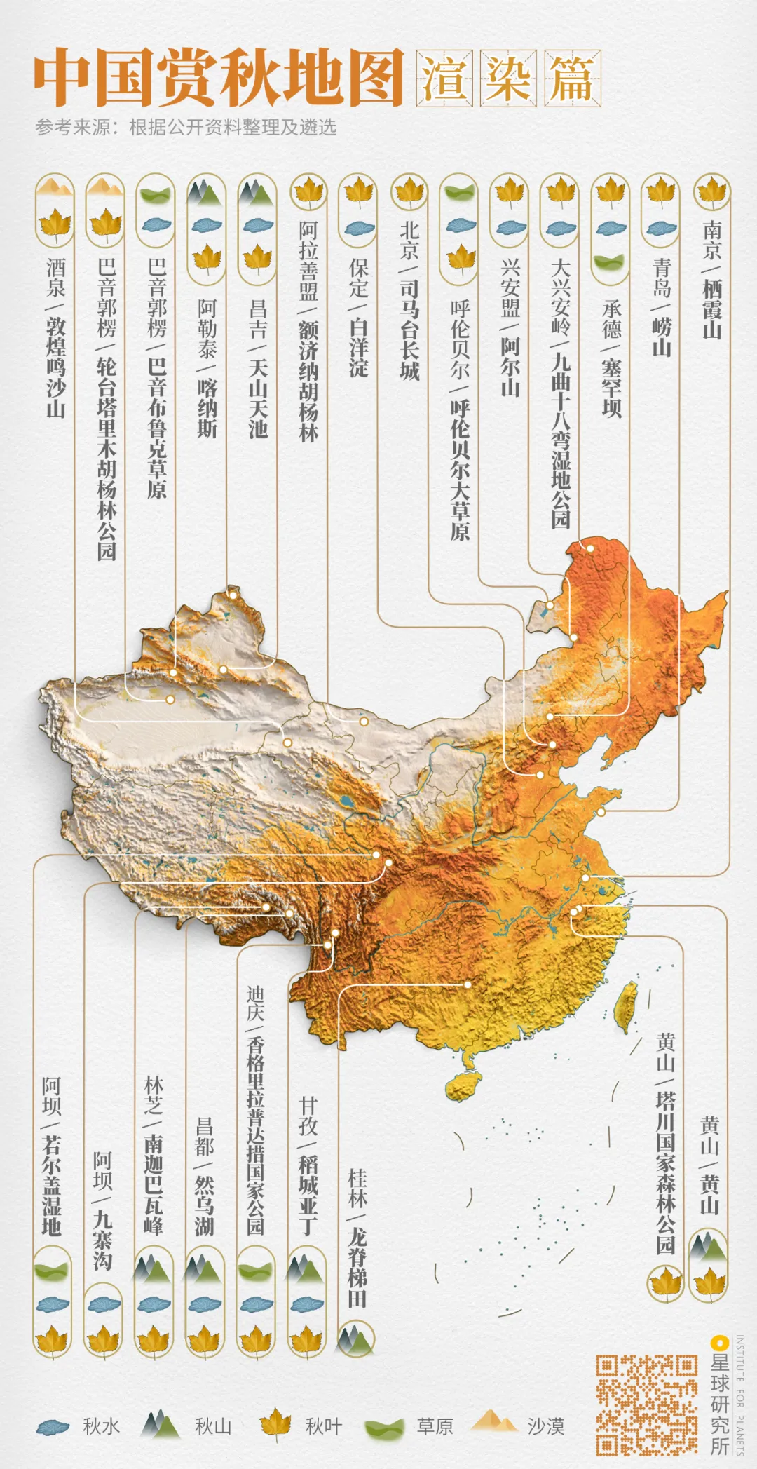 (中國賞秋地圖⎜渲染篇,製圖@鄭藝&鄭伯容/星球研究所)