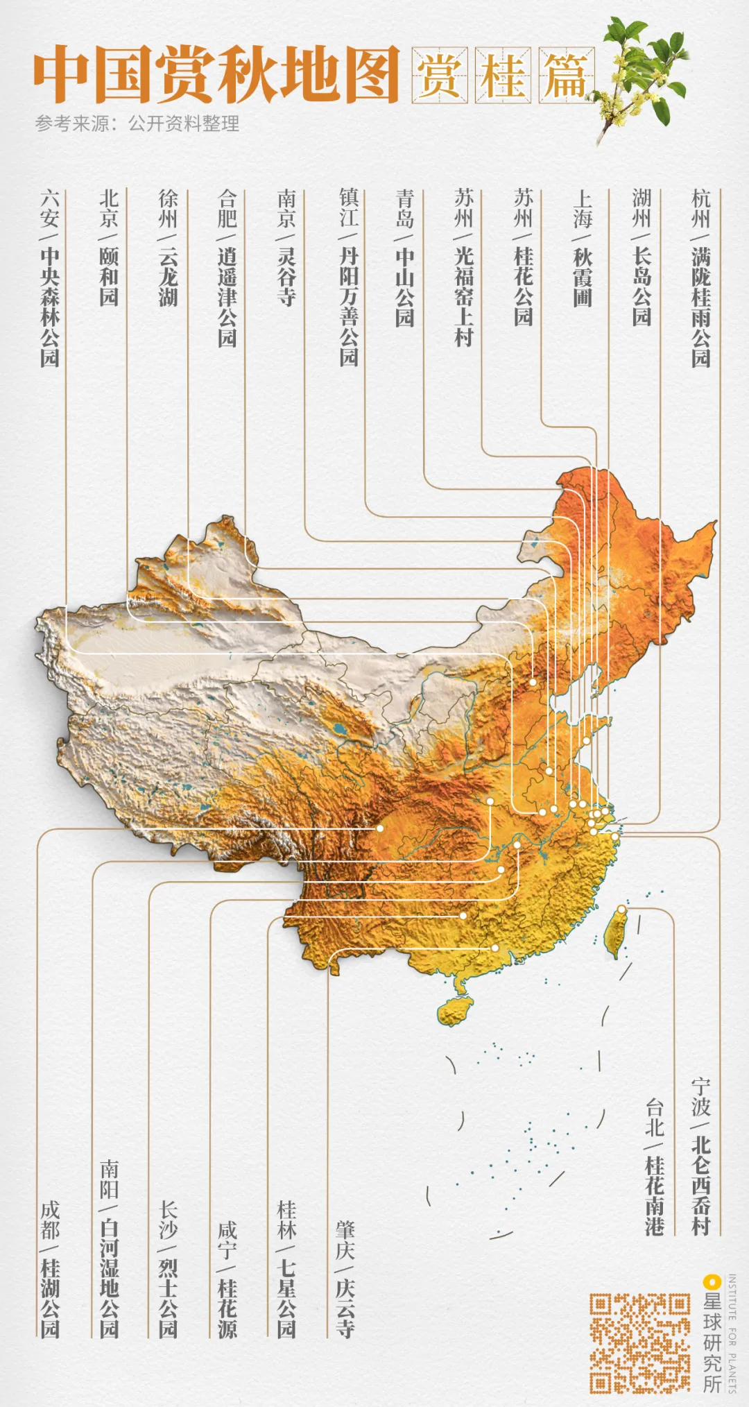 (中國賞秋地圖⎜賞桂篇,製圖@鄭藝&鄭伯容/星球研究所)
