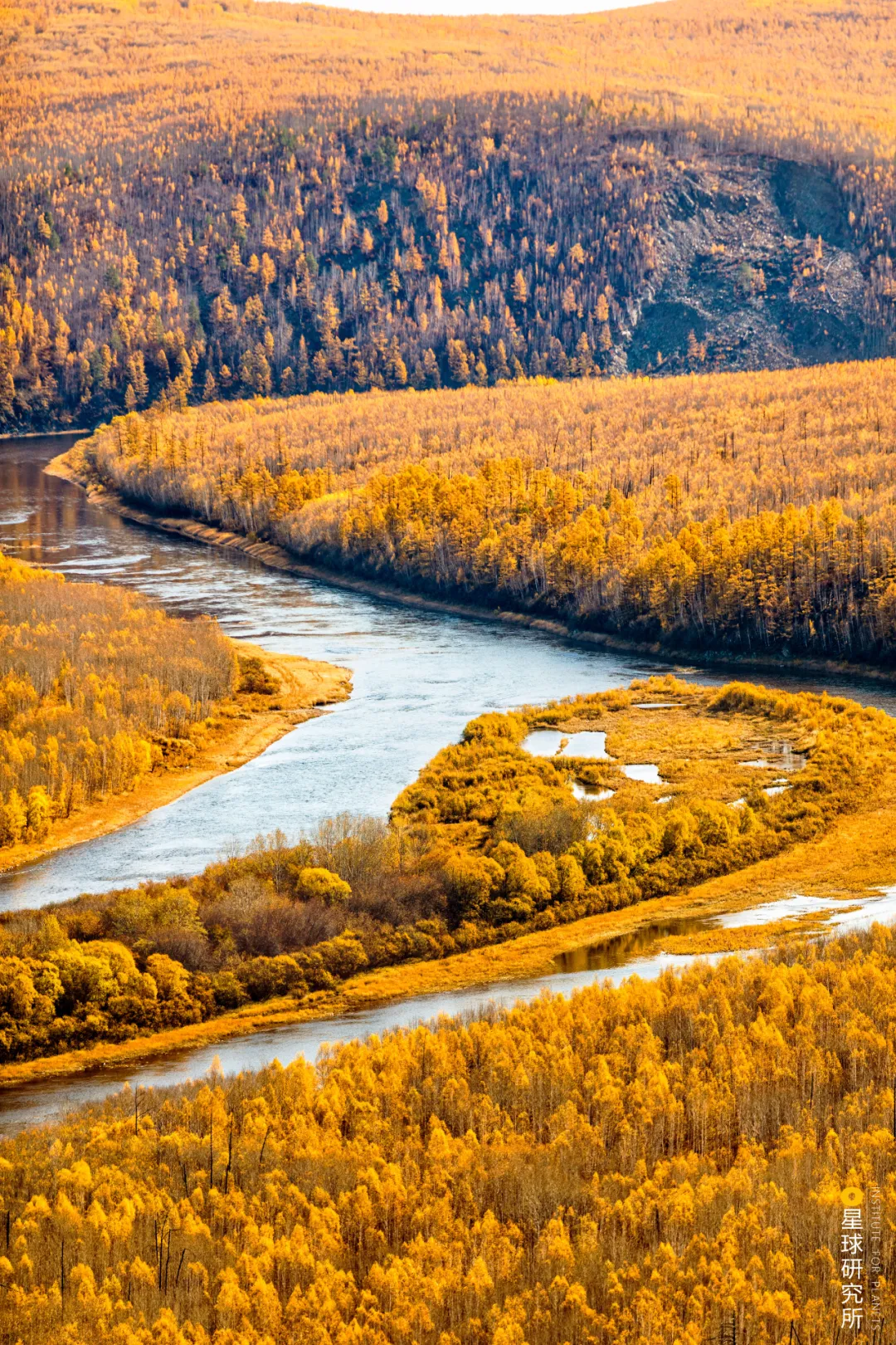 (出自漢朝劉徹《秋風辭》;下圖為大興安嶺秋色,一江秋水向東流,攝影師@趙高翔)