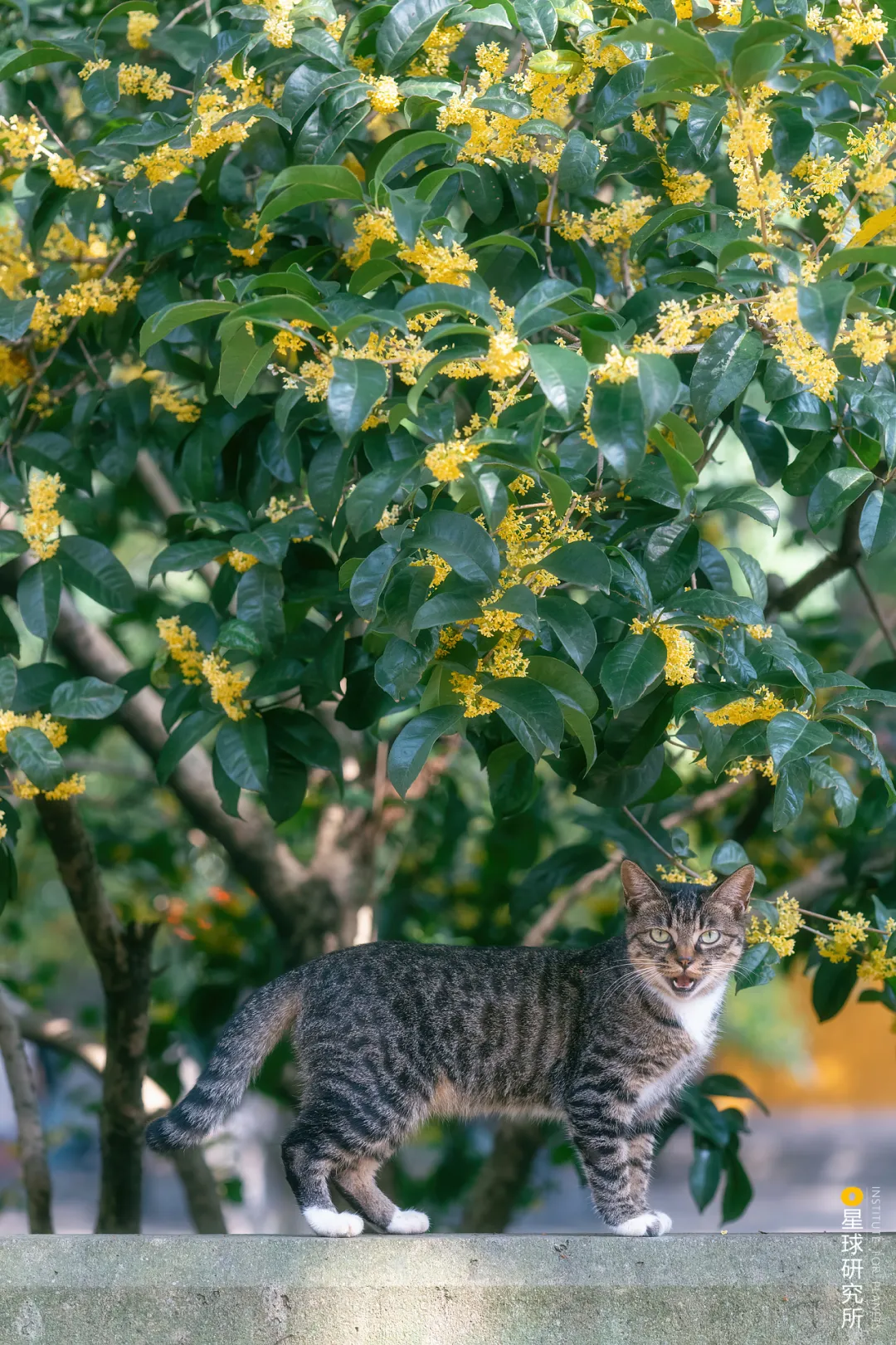 (出自宋朝黃庭堅《答許覺之惠桂花椰子茶盂二首》 ;下圖中為杭州淨慈寺,桂花落雨,狸貓閒逸,攝影師@喵嗚不停)