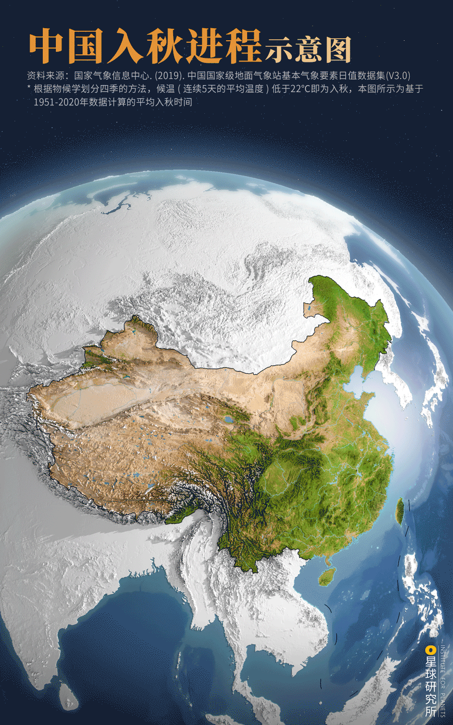 (中國入秋進程示意圖,製圖@鄭藝&鄭伯容/星球研究所)