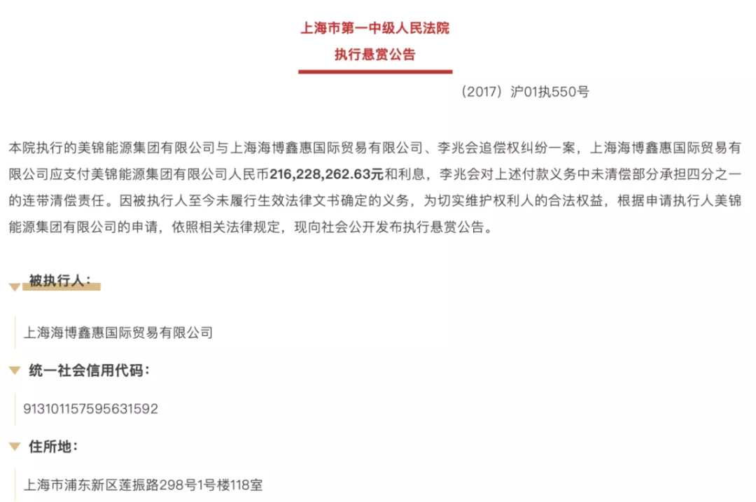 這一次,懸賞2100萬“活捉”李兆會的正主,也是美錦能源。