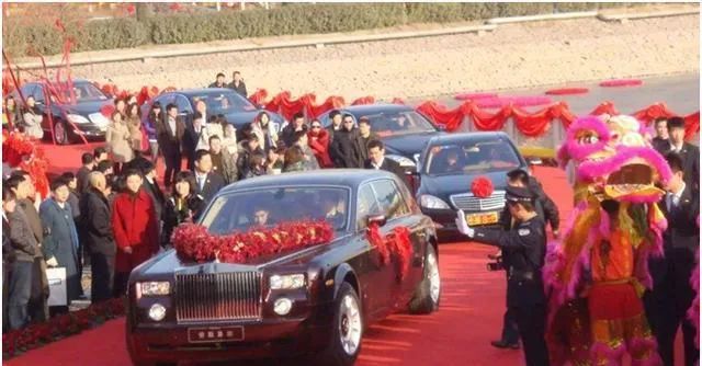 天上掛起紅色的燈籠和綵球,地上覆着紅色的帷幔和地毯,看遠處,200輛豪車列隊駛過,走近了,500桌流水席人聲鼎沸。