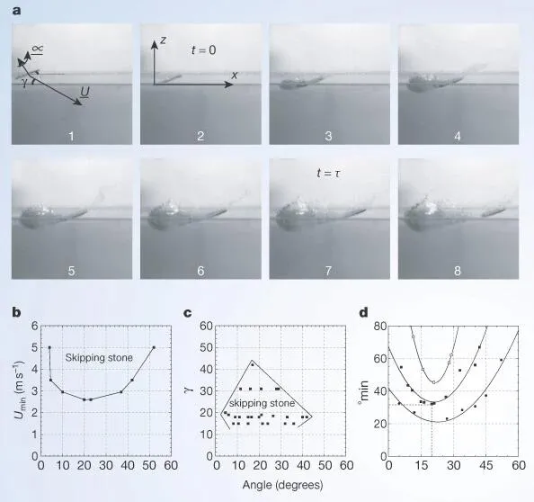而真正對打水漂這一物理現象的學術研究,不僅從18世紀就已經開始,還有不少成果登上了《Nature》這樣的權威刊物,甚至還在世界大戰中發揮了作用。