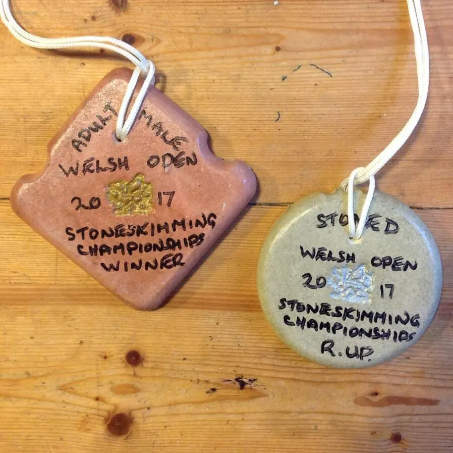 打水漂賽事的獎牌,多是由舉辦地就地取材的石塊製成