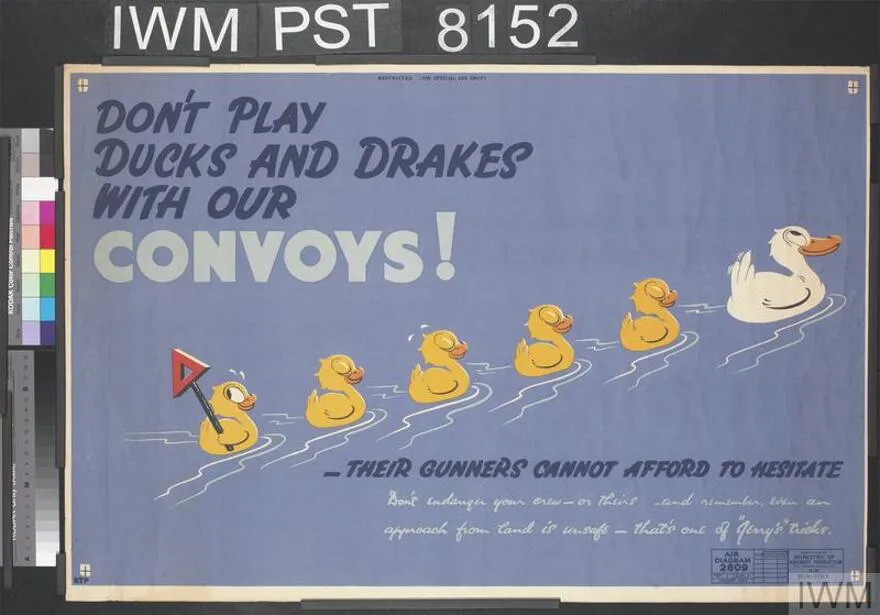 二戰期間融合了“ducks and drakes”鴨子和打水漂兩種含義繪製的海報