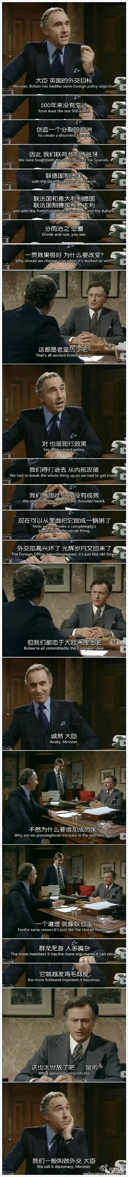 其中最經典的,莫過於英國紳士自黑神劇《是的,大臣》,黑貓強烈推薦,這部神劇誕生的時候,帶英帝國還沒有今天那麼弱雞,而蘇聯也還在,許多段子令人拍案叫絕。