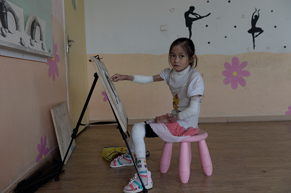 周迎春負責給女兒包紮,18年來,他每天都要拆掉女兒身上舊的敷料,小心破開水皰、消毒清創、全身檢查一遍,再重新上藥。這一過程,需要3個小時。