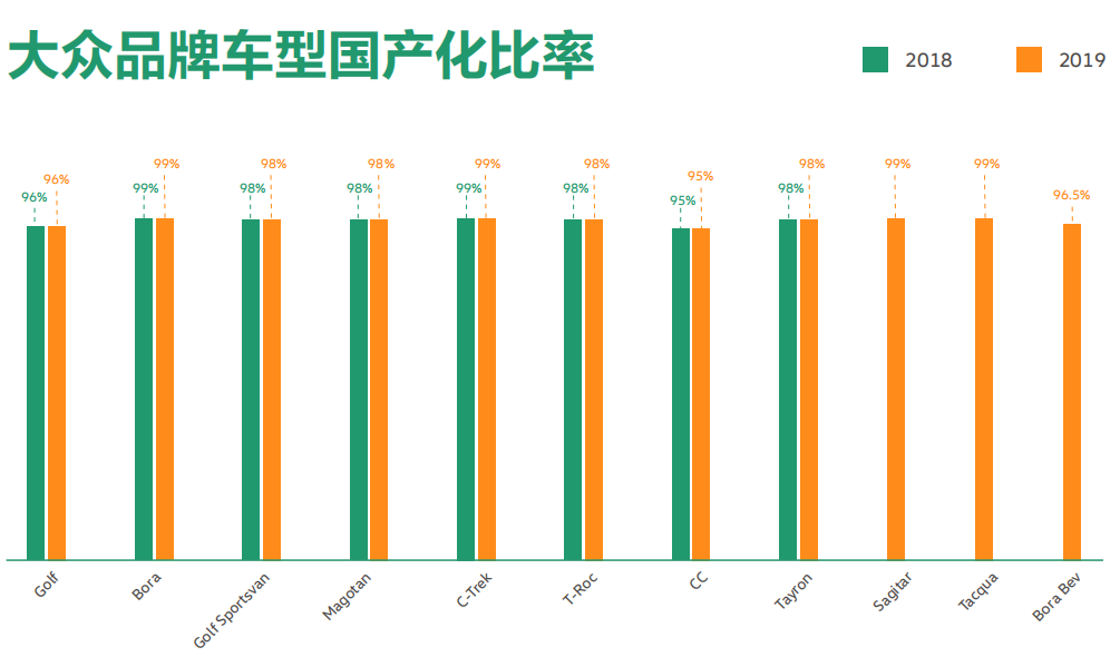 在大眾Golf這樣的車型上,國產化率可以做到96%以上。但是到了奧迪A4這樣的高端車型,我們就只能做出百分之五六十的國產化率,大量零部件需要從海外進口。