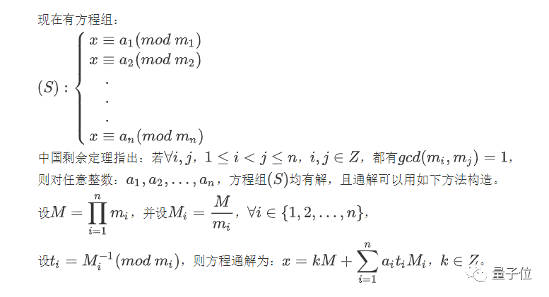 比如非常有名的RSA加密算法,就應用了中國剩餘定理。