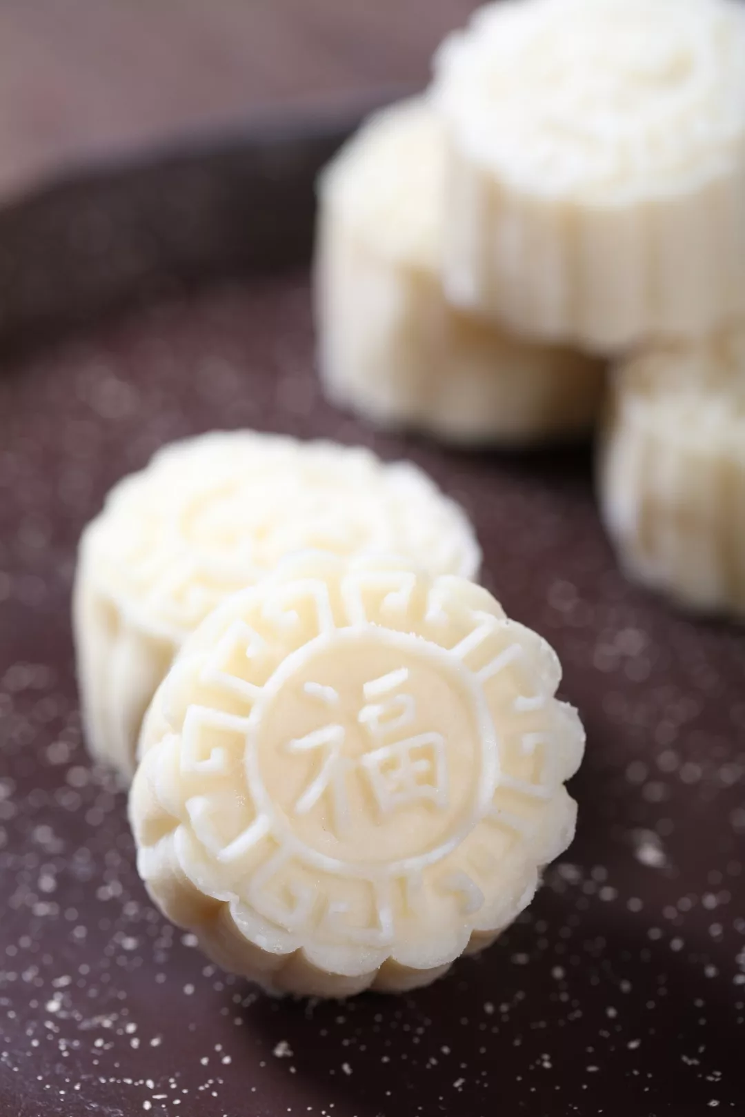 再比如最近幾年流行起來的冰皮月餅,為了展現晶瑩剔透的效果,常常以魔芋澱粉做皮,包裹顏色鮮豔的餡料。低温冷凍固化了本來軟榻的芋粉皮,讓它也帶有近似於鹼皮的包覆效果。