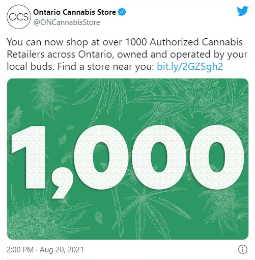 在過去的幾天裏,OCS在他們的Twitter賬户上宣佈將要在安大略省開設大約六家新的大麻店。