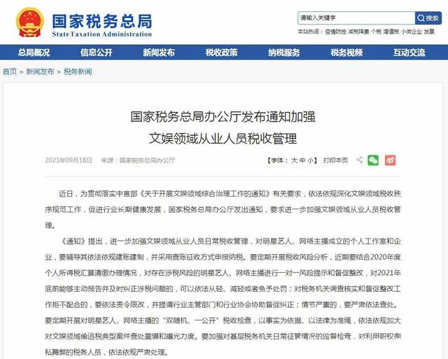 另外《通知》同時指出,進一步加強和改進對明星藝人、網絡主播等文娛領域從業人員及其經紀公司、經紀人的税法教育和宣傳引導,對相關人員和企業提出的納税繳費服務需求及合法合理的涉税費訴求,要及時研究解決。