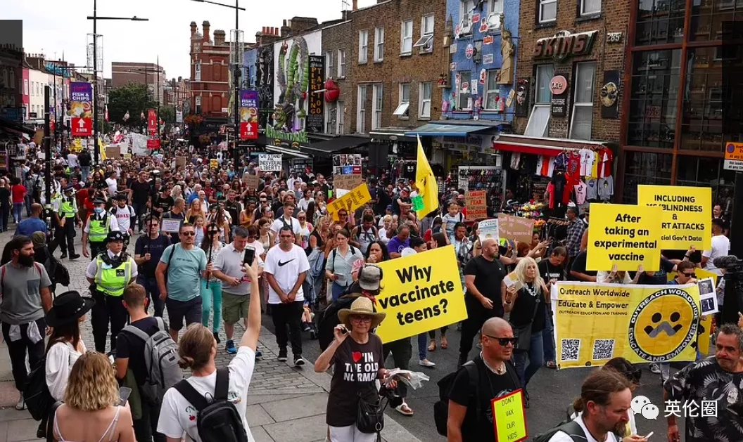 據《每日郵報》消息,週六(9月18日),數千名反疫苗抗議者湧入倫敦,呼籲政府取消向兒童提供新冠疫苗的計劃。