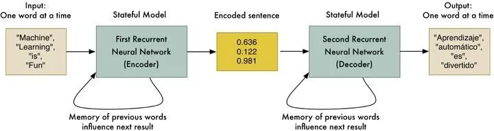 就當有個黑盒子叫做“編碼器”,輸入是一串串的字符,輸出是一堆數字的編碼。然後再把那一堆數字編碼,輸入另一個叫“解碼器”的黑盒子,解碼器輸出的是有意義的文字序列。這頭編碼器把中文“編碼”成一堆數字,那頭解碼器把這堆數字“解碼”成有意義的英文,一次翻譯就完成了。