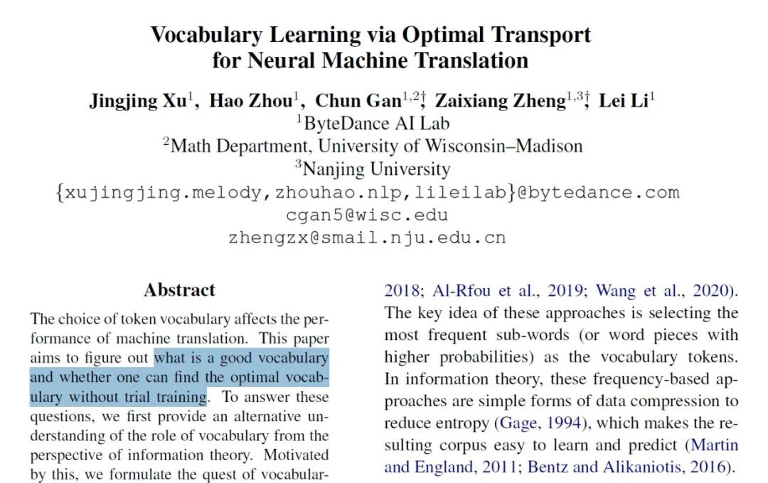 這些方法的細節,大家可以去看他們的論文《神經機器翻譯中通過最優運輸的詞表學習》(Vocabulary Learning via Optimal Transport for Neural Machine Translation)(https://arxiv.org/abs/2012.15671)。下面我們來講三個宏觀的要點。