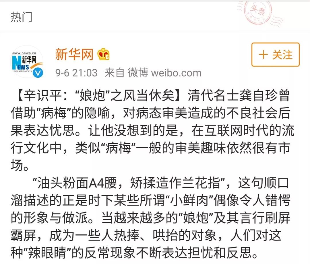 然而傳言終歸是傳言,在大家都還沒有摸清楚新華網所謂“娘”的尺度之前,“限娘令”一事大致難以成型。