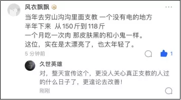以上説的這些支教老師,**沒有一個是像龍晶睛那樣,****每年下鄉幾天,就把“十年支教”掛在嘴邊的;**也沒有一個像龍晶睛那樣,聲稱做了十年支教,依然天天貌美如花妝不帶花的;更沒有一個像龍晶睛那樣,以支教的名義,去賺流量割韭菜的。