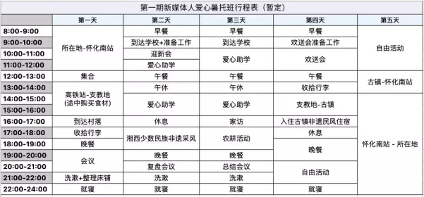 從下圖中的活動行程表可以看到,這個只有短短五天的活動,刨去第一天和最後一天的行車時間,以及第四天的歡送會,中間其實只有兩天的時間給孩子們“上課”,加起來滿打滿算也只有7節課。