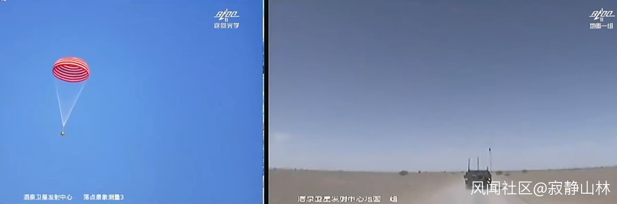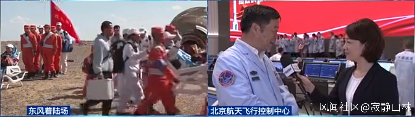 這之後就更過分了,落地後現場一系列地面組織動作都在做什麼?只聽轉播室呱啦呱啦説個不停,**切傘過程沒有聽到(大概又漏掉了),航天員報告情況也沒有聽明白。**航天落地一般過程的科普能不能放在後再説?還經常打斷遮蓋現場通話。