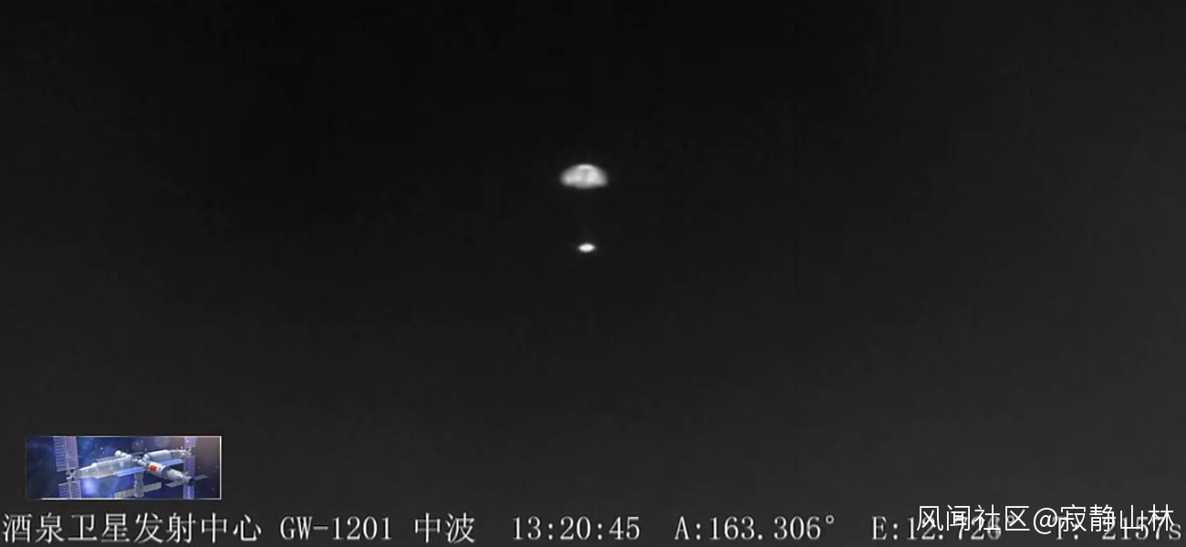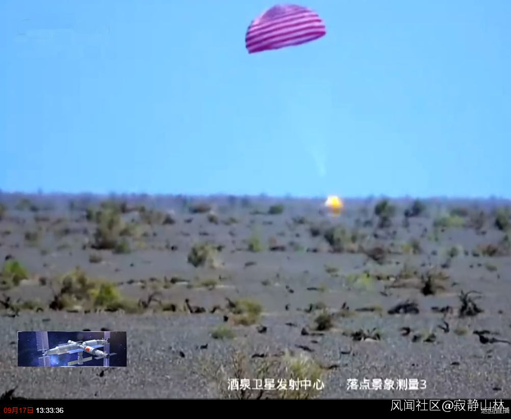 13:21′,再次出現彩色畫面,這次異常清晰。這之前我們聽到航天員説“真金不怕火煉”,**這個時候,直播要是來一個返回艙內畫面多好,尤其是開傘時艙內什麼狀態,很遺憾沒有。**記得以前楊利偉的時候有的;**這個時候,要是解釋一下這以後一直出現的清晰的彩色減速傘畫面多好,是直升機在跟拍嗎?怎麼做到這麼快就捕捉到的?近萬米高空如此鮮豔清晰的畫面又是怎麼做到的?它背後有多少我國高科技黑科技?**很遺憾嘉賓不説。