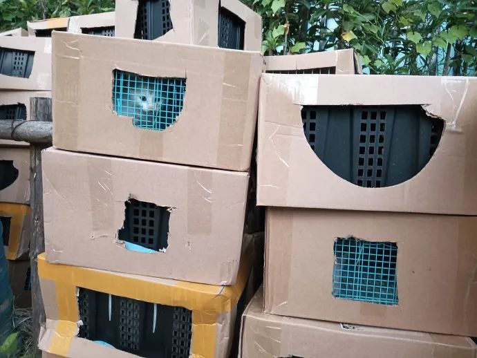 都被關在用紙箱覆蓋的籠子裏面