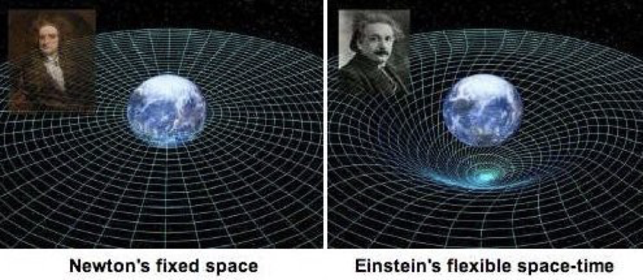 圖1 牛頓的固定空間和愛因斯坦的變化時空 圖源電影《Testing Einstein’s Universe》