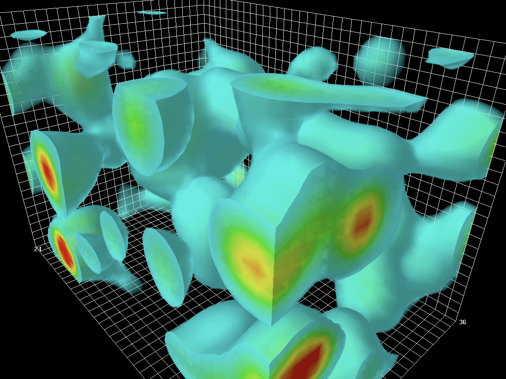 圖3 量子力學理論中,能量的暫時性隨機變化也就是量子漲落可以發生在空間內的任何位置。上圖表示了任意由於能量超過1.022MeV的電子空穴對而物質化成為元素粒子的希格斯場中細微的隨機波動。