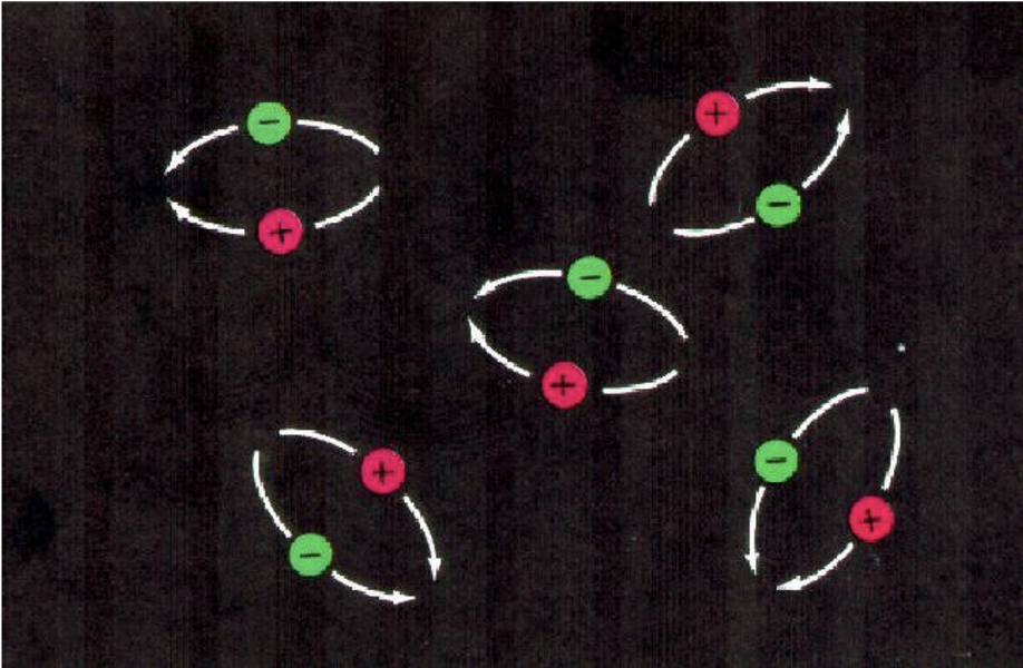 圖5 根據海森堡不確定性原理在短週期內違反能量守恆反覆出現消失的漲落的虛擬粒子
