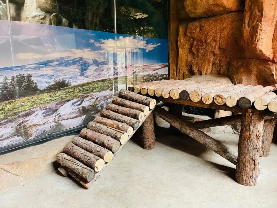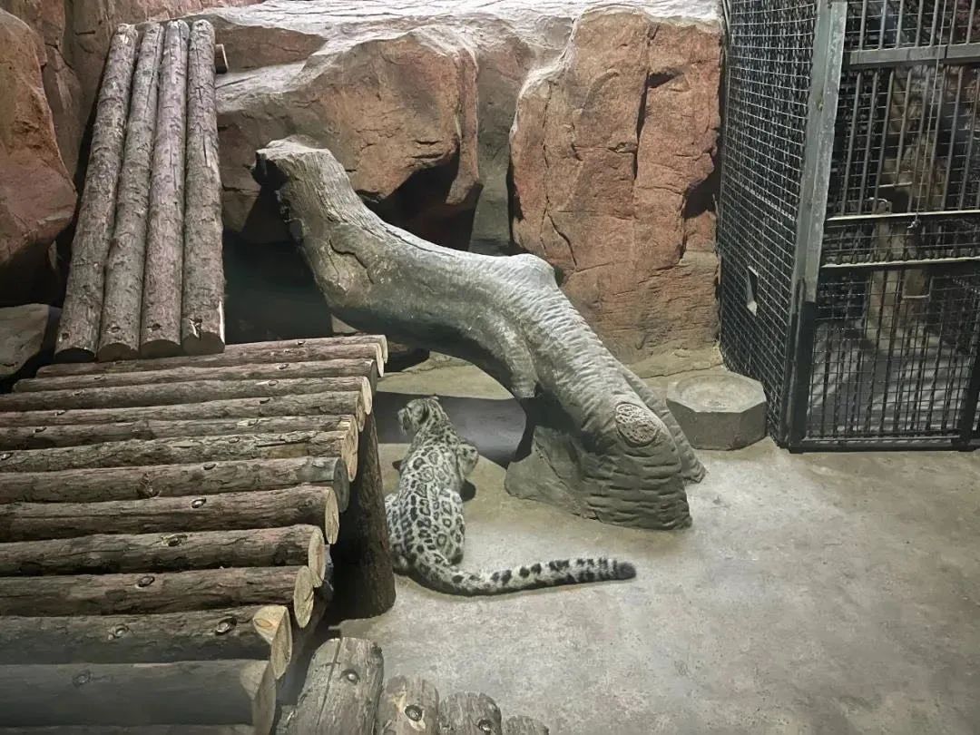 反觀鄂爾多斯動物園,在文章中,其宣稱新籠舍給雪豹提供了模擬自然環境,然而這個“模擬”只不過是內場館的一張雪山貼畫而已,最多再加上幾個棲架和空調,似乎跟養大熊貓場館的標配也沒有太大區別。