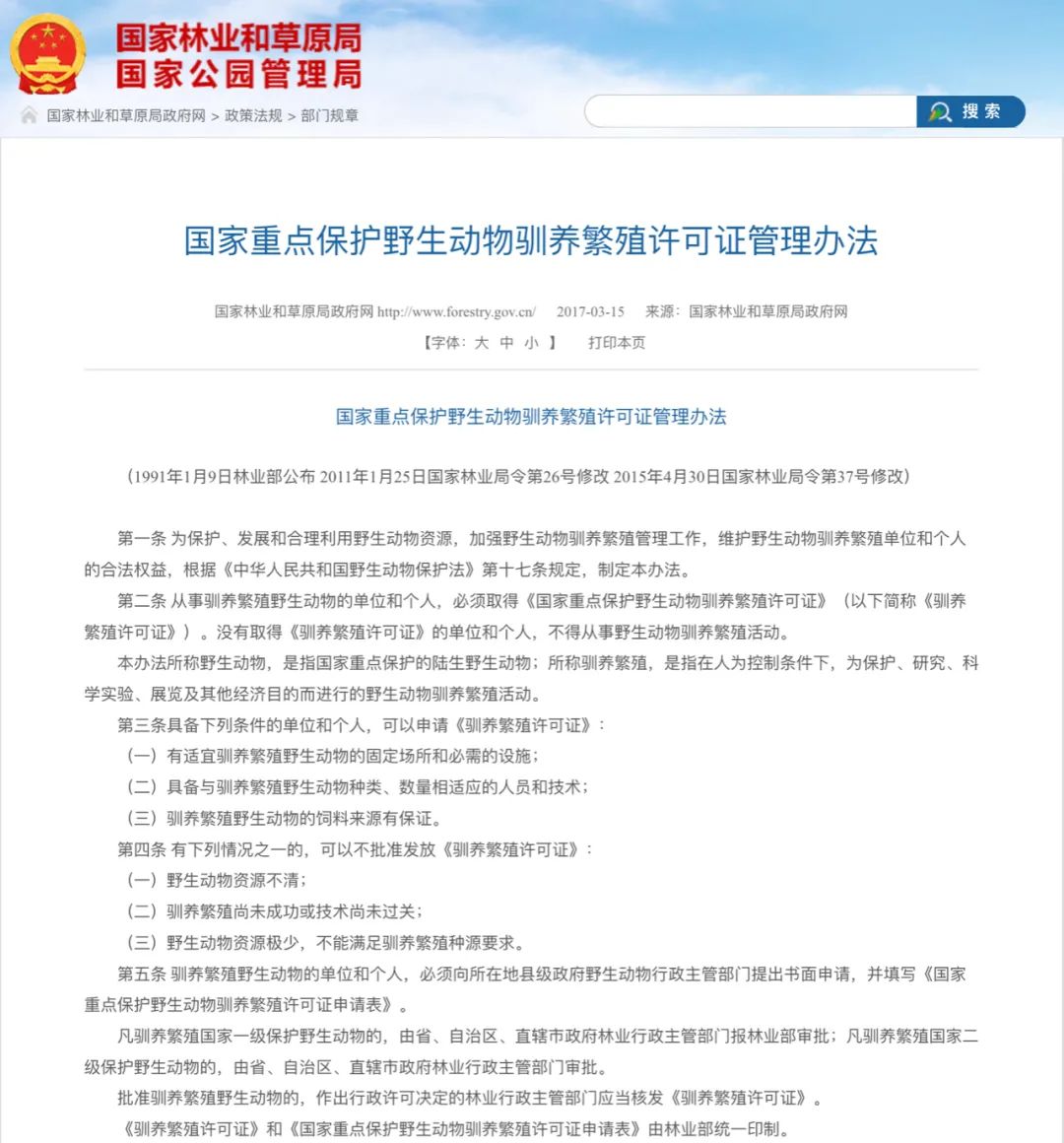 野生動物馴養繁殖許可證相關文件 圖源網絡