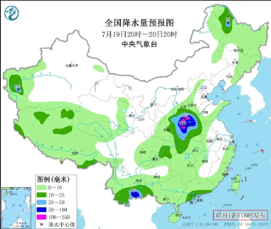 2021年7月19日20時至20日20時全國降水量預報圖