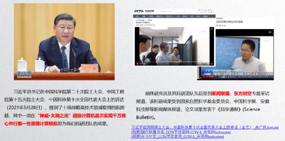 這項工作得到了《新聞聯播》《東方時空》等許多媒體的報道。在今年5月28日的院士大會上,習總書記還提到了它,作為戰略高技術領域取得的新跨越之一。