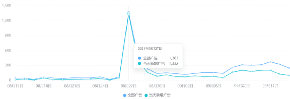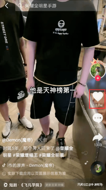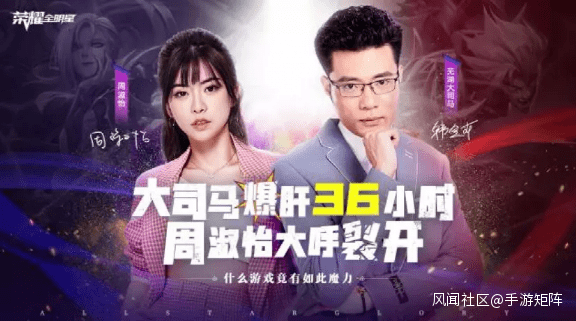 買量情況:據AppGrowing顯示,該遊戲在8月27日的投放買量並不高,但在營銷代言方面,《榮耀全明星》邀請了人氣主播周淑怡與蕪湖大司馬進行宣傳。代言人的粉絲偏好都帶有競技屬性,與《榮耀全明星》的遊戲特色契合,因此在抖音平台的相關話題獲得超過5400萬的視頻播放量。