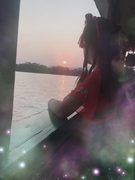 圖 | 徐婷婷為女兒李晏精心妝扮,泛舟昆明湖上