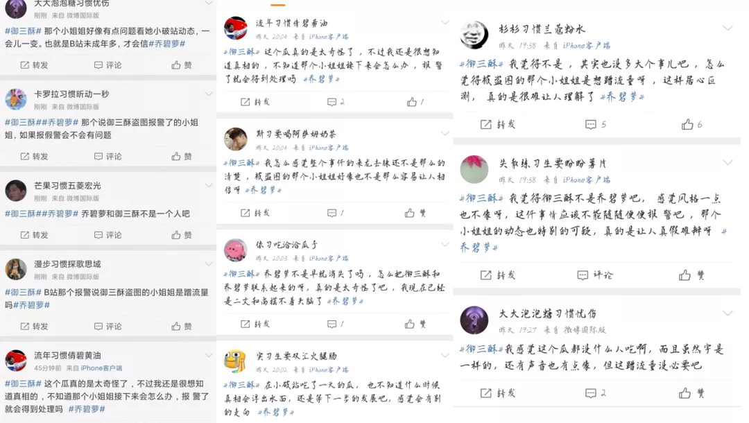 與此同時,她也告訴我在這件事情曝光之後,喬碧蘿所屬的MCN公司還購買了水軍,在喬碧蘿和御三酥的詞條中大量刷屏。
