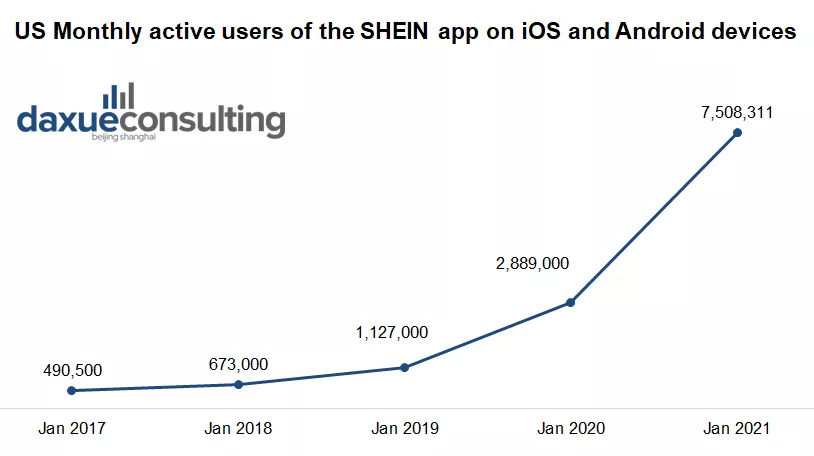 SHEIN在美國的月活躍用户總計只有49萬人。