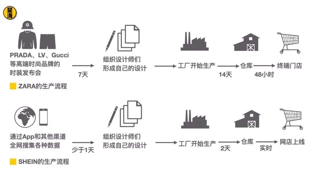 所以,就算把跨國快遞的時間算上,SHEIN產品從開始設計到最後消費者穿在身上,中間最多只需要14天左右——換成ZARA,現在可能才剛剛設計完成。