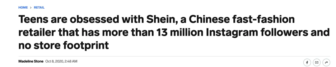 翻譯:青少年沉迷SHEIN不可自拔,中國快時尚品牌在INS上有超過1300萬粉絲卻沒有一家實體店。