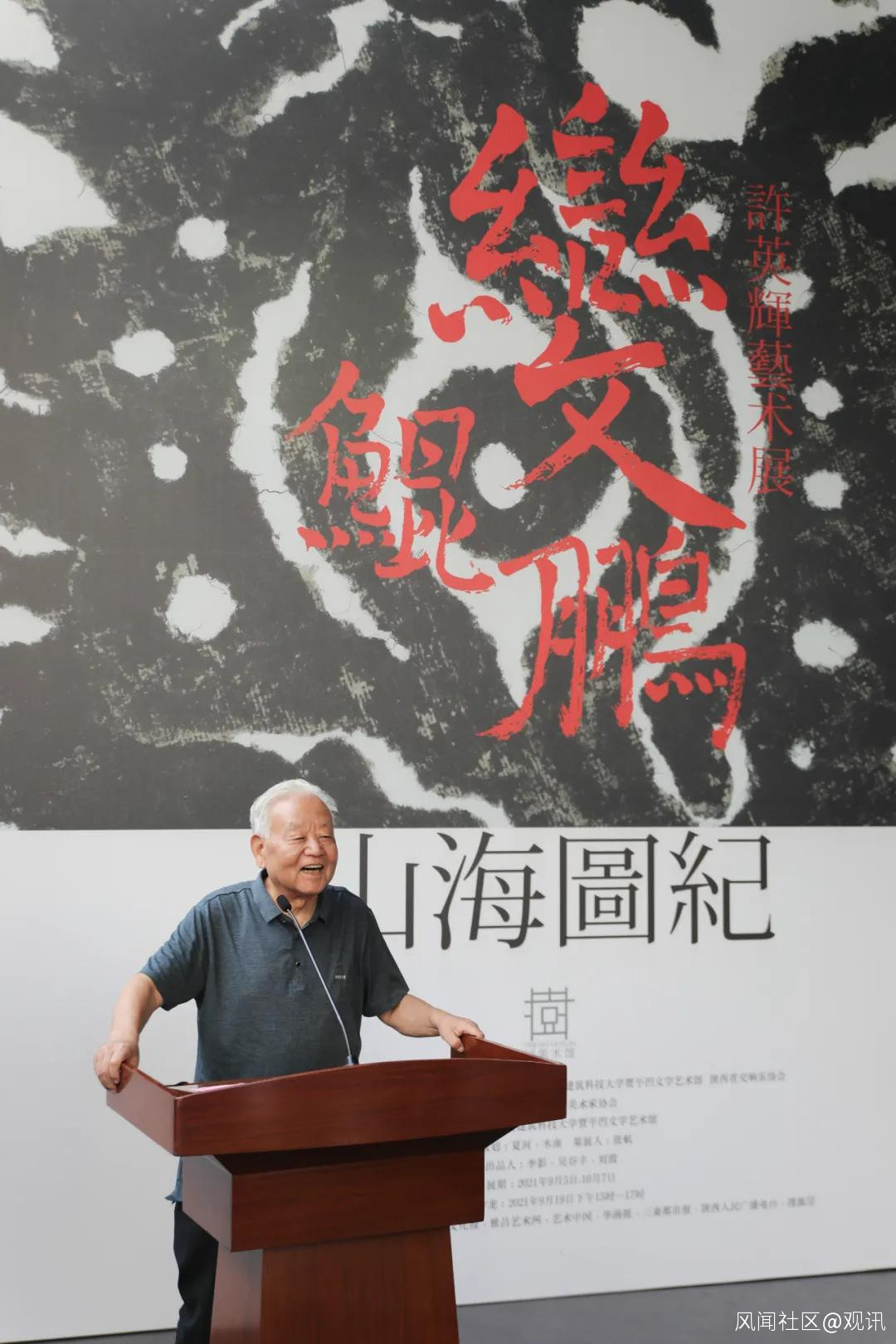 9月19日,2021賈平凹文學藝術館藝術邀請季:《山海圖紀》之鯤鵬變許英輝藝術展的中秋特別活動“中秋話鯤鵬——許英輝作品研討沙龍”在西安建築科技大學賈平凹文學藝術館舉辦,著名文學家賈平凹先生特為本次展覽送上寄語:“偉大的山海經,傑出的鯤鵬變。”