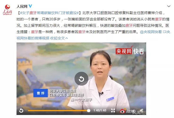 女子磨牙,常喝碳酸飲料門牙被磨沒:磨牙是種病,該引起重視了_風聞