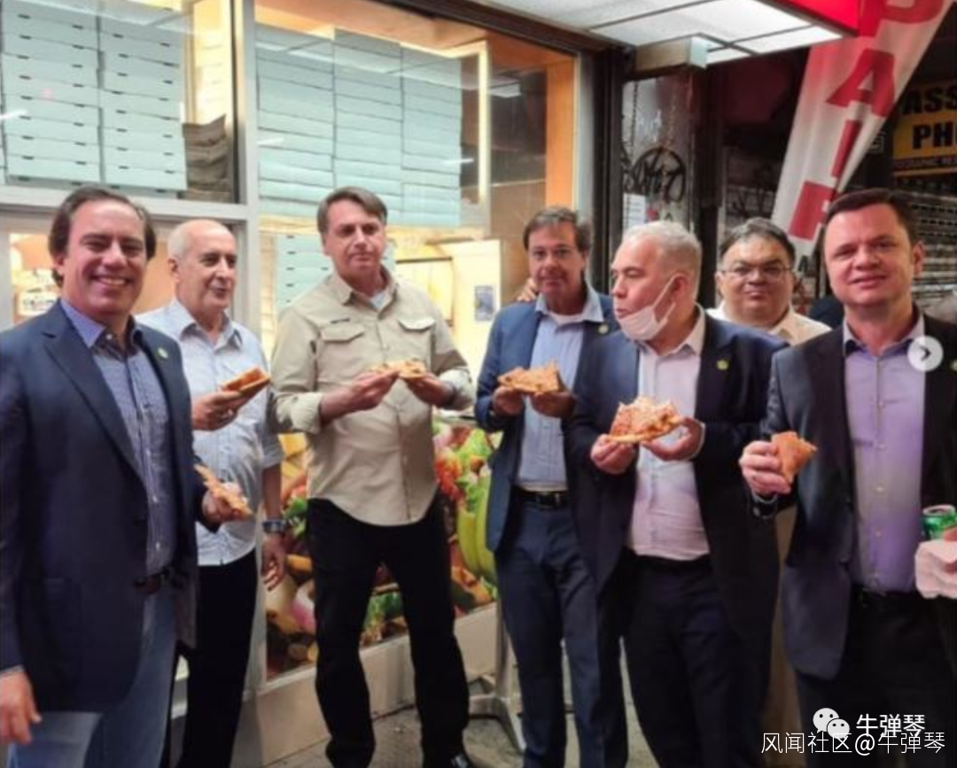 這樣有個性的總統,聯合國也無可奈何,紐約餐館倒是很直率,沒打疫苗,拒絕你堂食。於是,巴西總統和一羣高官,只能站在紐約餐館外面的人行道上,吃起了披薩。