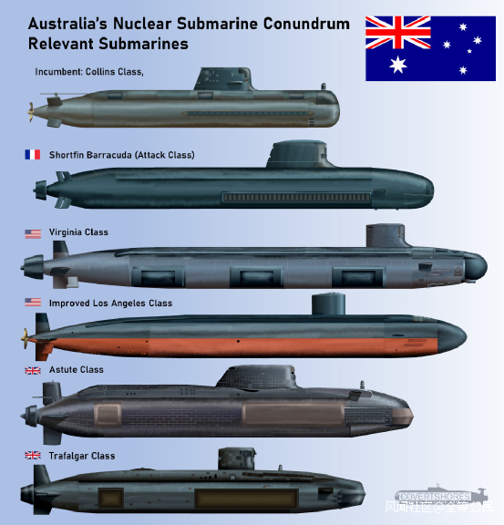 澳大利亞也把潛艇力量的目標規模增加了一倍,從6艘“柯林斯”級增加到12艘“攻擊”級(“短鰭梭魚”級的澳大利亞命名)。
