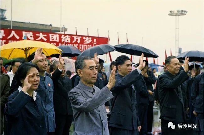 1973年,周恩來總理在雨中送別蓬皮杜總統的場景。蓬皮杜是西歐第一位正式訪問中國的國家元首,意義非凡。