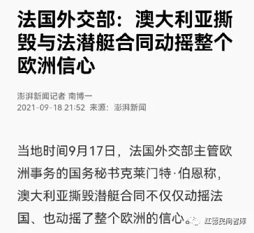 不但如此,英美澳的歐洲盟友法國還玩了出從美國、澳大利亞撤回大使的好戲。